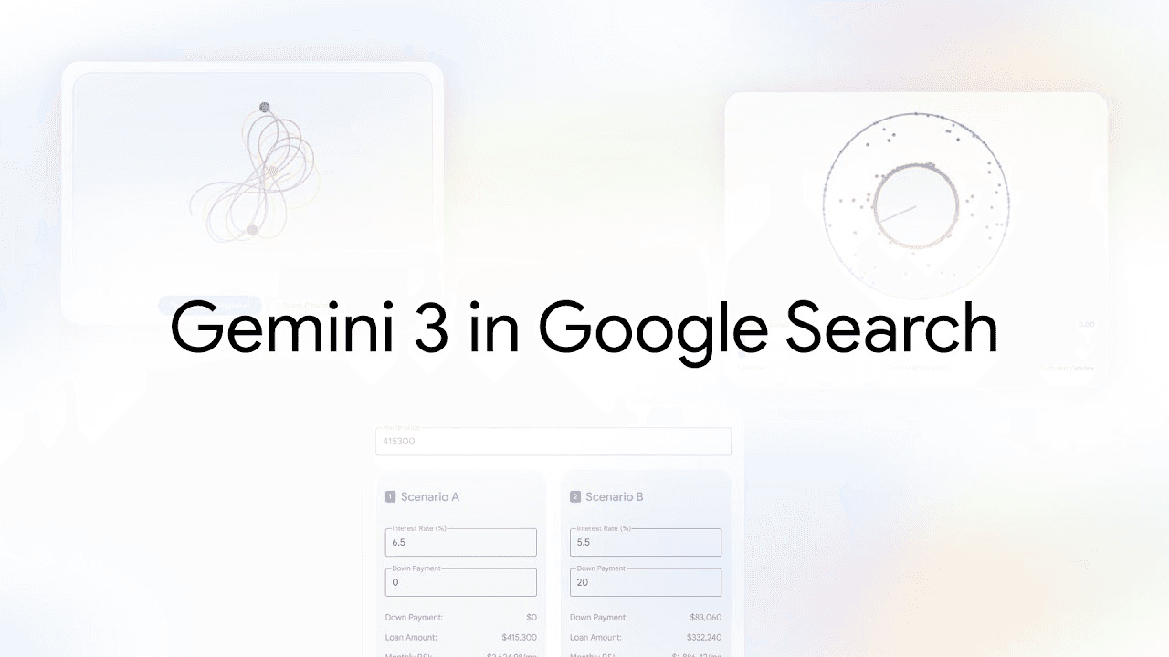 Generative UI in Search — AI Mode in Google Search now uses Gemini 3 to generate interactive layouts, simulations, and tools on the fly (think mortgage calculators that adapt as you tweak variables).